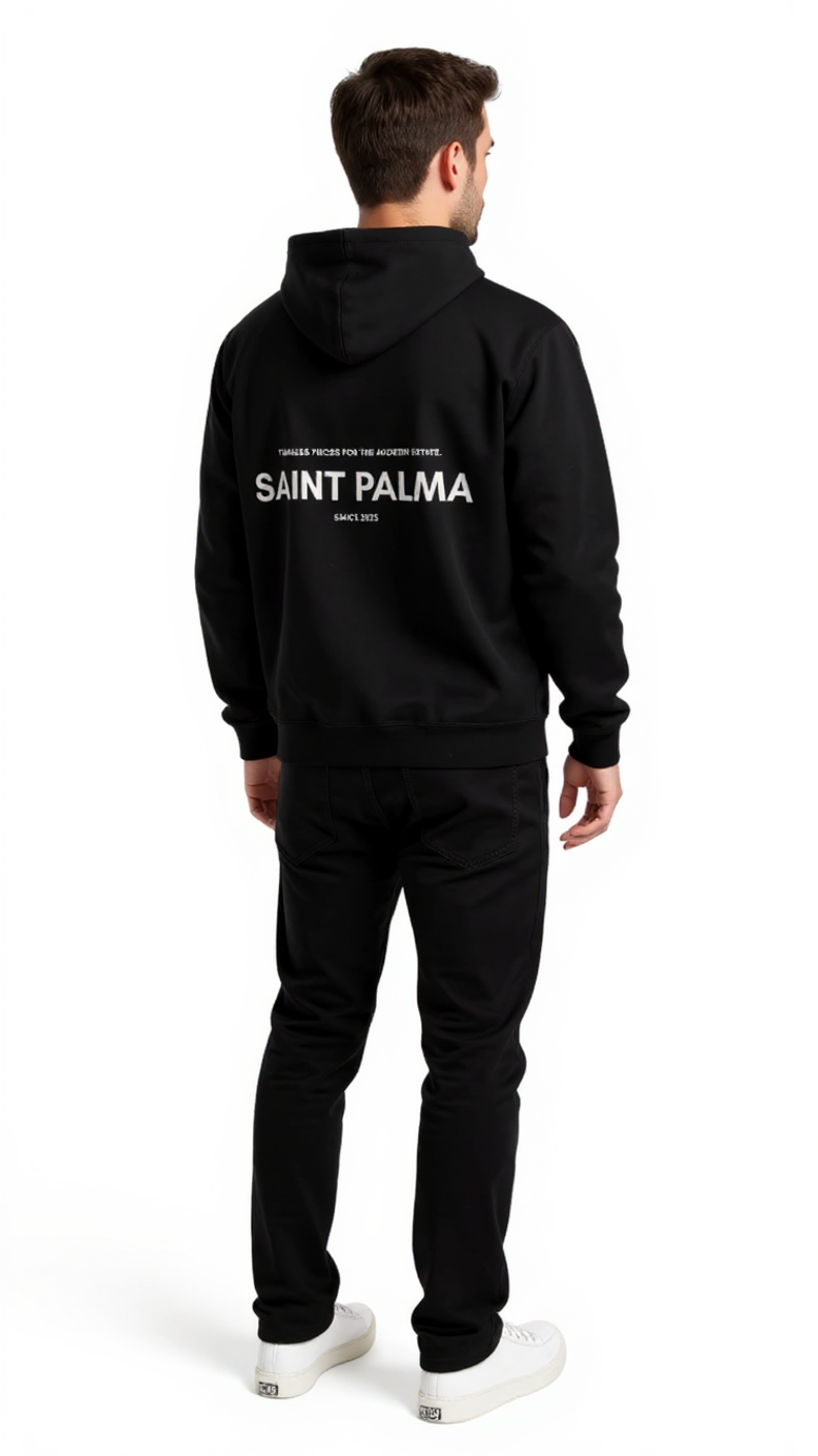 Crafted for everyday comfort and effortless style, the Saint Palma Original Hoodie captures the relaxed luxury that defines the brand. Designed with a heavyweight cotton-blend fleece, it delivers warmth and softness without losing its structure. The minimalist front features a small “Saint Palma” wordmark or emblem, while the back can host a subtle oversized print or tonal embroidery that elevates the silhouette without overpowering it.